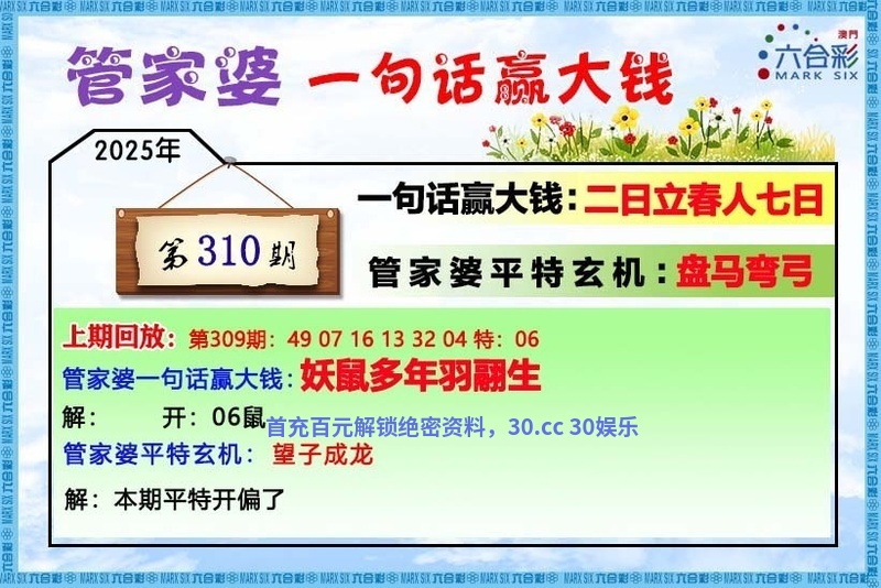 | 309期:单双 | 双肖+牛兔 | 开鼠06中 |